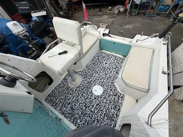Semicabinato Pilotina cantieri Sidra modello Orsa Minore 5.50 metri di lunghezza, 1.92 di larghezza , portata 6 persone Scafo autosvuotante, con murate alte, dalle ottime doti marine. Barca pronta da mettere in acqua, impianto elettrico rifatto stagione 2025 con stacca-batteria, luci interne, luci di navigazione, pompa sentina, indicatore benzina, batteria il tutto nuovo Serbatoio acqua con doccetta e pompa sempre tutto nuovo 2025 Serbatoio benzina inox sotto pavimento con tappo imbarco sulla murata Ecoscandaglio buono Cuscineria presente, vecchiotta ma funzionale Porta cabina riverniciata 2025 con prodotti professionali, delfiniera diprua rifatta fare sempre 2025 Possibilità di motorizzare con johnson 737 40cv 2t tagliandato pronto uso. 800€ in più Prezzo non trattabile, no carrello ma possibilità di trasporto