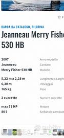 Vendo pilotina Janneau Merry Fisher in ottime condizioni, di semplice manutenzione e costi di esercizio contenuti. Motore Yamaha 40/60 con solo circa 180 ore di esercizio. Guida senza patente . Sempre in acqua dolce. Ecoscandaglio Garmin. Cuscineria in buono stato . Dotazioni di sicurezza ed emergenza come da regolamento. Tendalino . Telo di copertura. +39 3471547965