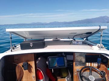 Pilotina Vega 499 USATA SOLO IN ACQUA DOLCE Barca nata per campeggio nautico, ci ho dormito diverse notti in boa con i figli Completamente ristrutturata nel 2023: 2 strati vetroresina aggiuntivi su tutto lo scafo, specchio di poppa rifatto completamente con legno di okume (ora porta un motore da 70cavalli). - Pannello fotovoltaico da 170W sul tetto (si può alzare per posizionare oggetti sotto) - regolatore di carica a 2 uscite 12v, per 2 batterie (regolabile la % di carica da dedicare ad ognuna delle batterie) - pacco batterie in prua (3 batterie da 70 A) - tendalino - lavandino - oblò laterali nuovi - comignolo di estrazione aria calda sul tetto - vaschetta applicabile esternamente per BBQ - luci led interne led - luci led esterne led - luci di via - impianto elettrico nuovo, in cassetta , con fusibili e pulsantiera nuova (ogni linea con adeguati fusibili) - cuscineria interna interna ed esterna - predisposizione per utilizzo motore di prua minnkota (anche passaggio di corrente direttamente alla prua) - supporto tv\ecoacandaglio - cavi volante sostituiti nel 2023 - pompa di sentina in poppa, avviamento automatico e manuale - stacca batterie a norma che sgancia tutto tranne la pompa di sentina - tendalino - copertura su misura per parte scoperta fatta 1 anno fa Attualmente in porto, funzionante Vendo per passaggio a modello superiore