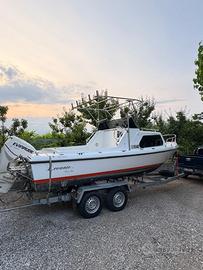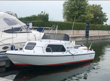 Vendo pilotina vega 6.40 m con 115 cv fuori bordo evinrude 2 tempi, da tagliandare, utilizzato solo 5 volte durante l'estate. Rifatta antivegetativa sempre ad inizio stagione, T-top in acciaio inox nuovo fatto fare ad inizio stagione con 5 porta canne sempre in acciaio, rivisto tutto l'impianto elettrico, tutta la cuscinetta nuova con tessuti top compresa tutta la gommapiuma nautica sia interna che esterna, riverniciato gavoni interni, luci nuove, radio con bluetooth e casse nuove ip67 impermeabili, cornice acciaio ispezione serbatoio nuova, wc chimico nuovo mai utilizzato, 2 strumenti raymarine eco standaglio e plotter cartografico, tendalino copri pozzetto, dotazioni di bordo non presenti, barca pronta all'uso, nessun lavoro da eseguire