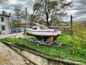Vendo a malincuore questa barchetta (ilver gioy) può essere usata sia come pilotina sia come barca a vela, ha bisogno sicuramente di una sistemata, cime e tiranti sono nuovi, la vela è messa benissimo, è compresa di tutto ma come ho fatto notare nelle ultime due foto, c'è appunto da dargli una mano di vetroresina perché per via di un guasto (spezzato il timone) per tornare a casa si è dovuto procedere a fare ruotare il motore invece che usare il timone. Se spesi qualche soldino diventa molto bella considerando anche la cabina non poco spaziosa per la categoria. E sicuramente di valore maggiore, vendo per mancanza di tempo. Dispone di un motore Yamaha 25cv autolube con miscelatore appena revisionato nel 2025. Parte subito. Con una piccola aggiunta lo do insieme alla barca.