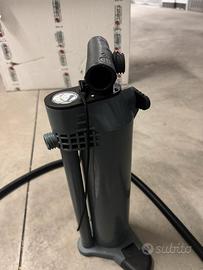 Evita l'attorcigliamento del tubo durante il gonfiaggio grazie al meccanismo di fuoriuscita dell'aria integrata sul corpo stesso della pompa manuale.