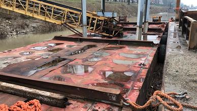 disponiamo di pontoni in galleggianti in ferro dotati di regolari documenti, utilizzabili per lavori idraulici, pontili galleggianti ed opere idrauliche in genere