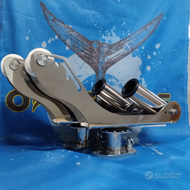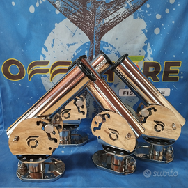 Portacanna per barca OFFSHORE realizzato in inox AISI 316l lucidato a specchio,regolabile in 4 posizioni verticali scorrevoli e girevole sul piano orizzontale a 360 gradi tramite un pistone a sgancio rapido per trovare l 'assetto migliore durante di pesca.