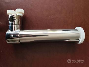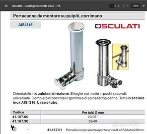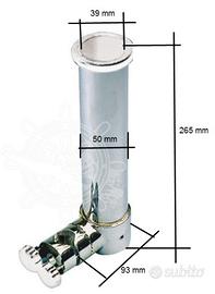 Orientabile in qualsiasi direzione. Si toglie e si mette in pochi secondi, universale. Completo di boccola in gomma e di spina ferma canna. Tutto in acciaio inox AISI 316, base e tubo.