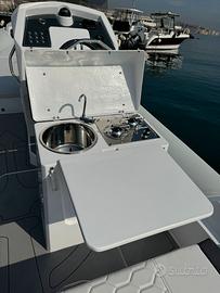 GOMMONE NUOVO !!! Il battello è dotato dei seguenti accessori di serie: Impianto benzina con serbatoio da 140 lt. Impianto elettrico doppia batteria Cruscotto serigrafato Pulsantiera soft touch in acciaio Pompa di sentina automatica Avvisatore acustico Bussola Volante a 3 razze Scaletta mare inox Tavolino snack Tagliere in legno Lavabo in vtr Calpestio parziale in Seadeck Tappezzeria in cellula chiusa con fodera in LINETEX Tubolari in neoprene ORCA Ci troviamo a Napoli (Uscita Tangenziale Varcaturo) presso il Centro Nautico Partenopeo. Si valutano eventuali permute.