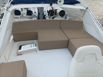 Dispone di 2 cabine matrimoniali con bagno in camera, cabina con letti a castello e bagno uso comune, cucina 4 fuochi induzione, ampia dimette, Fly con divano e tendalino, cabina marinaio con servizio igienico.