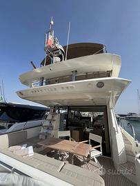 Flybridge molto spazioso con grande prendisole che affianca la plancia di guida, mentre un tavolo contornato da un ampio divano occupa la zona di poppa, sempre sul fly si trovano un grill ed un frigorifero dedicato, il tutto ombreggiato da un bimini a 4 archi dotato di luci led per cena.