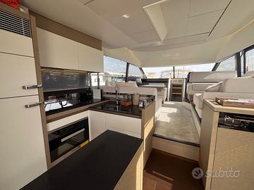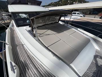 2x435 hp Volvo,490 ore di moto. DESCRIZIONE DEGLI INTERNI Flybridge molto spazioso con grande prendisole che affianca la plancia di guida, mentre un tavolo contornato da un ampio divano occupa la zona di poppa, sempre sul fly si trovano un grill ed un frigorifero dedicato, il tutto ombreggiato da un bimini a 4 archi dotato di luci led per cena. Salone con divano e tavolino, cucina attrezzata open space, direttamente sul pozzetto con grande porta che sia apre quasi a totale scomparsa lasciando un passaggio senza ingombri dalla cucina/ dinette al pozzetto. Cabina armatoriale matrimoniale a tutto baglio con finestre panoramiche ed ingresso separato. Bagno armatoriale.Cabina VIP a prua matrimoniale.Cabina ospiti con letti in piano.Bagno ospitiZona equipaggio a poppa con cabina allestita ed aria condizionata. STRUMENTAZIONE Allarme fumo/gas, Allarme motore, Allarme sentina, Ancora, Autoclave, Batterie (servizi e motore), Bussola, Camminamenti laterali in teak, Caricabatterie, Comando motori elettronico, Computer di bordo, Contametri catena, Contamiglia, Display, 2 Doccia esterna (con acqua calda e fredda), Doppia timoneria, Ecoscandaglio, Elica di prua - bow thruster, Flap elettrici HUMPREE con correttore diassetto, GPS (multifunzione Axiom 12"), Log, Luci di cortesia, Passerella (idraulica telescopica), Piattaforma (in teak), Pilota automatico, Plotter, Pompa di sentina automatica,Radar, Radio VHF, Salpa Ancore Elettrico, Salpa Ancore Manuale, Tavolo pozzetto (con sedie), Tender, Winch tonneggio di poppa (a sinistra), ( TENDER NON INCLUSO) DOTAZIONE ARMAMENTO Aria condizionata (in ogni ambiente), BBQ/ Grill (sul fly), Bimini (top fly con luci a LED), Boiler INFO CONTATTO Fabrizio Landini 3802463899 mediazioni a carico acquirente 5% oltre iva Buyer commision 5% + Vat La Società pubblica i dettagli di questa imbarcazione in buona fede e non può pertanto avvallare o garantire l'esattezza di tale informazione.