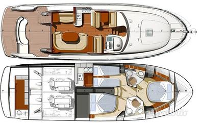 - Ampia dinette centrale con cucina ribassata, timoneria e seocno tavolino con sedute