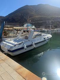 Tra le sue dotazioni importanti, doppio prendisole di poppa e di prua, spiaggina di poppa abbatibile, garage tender, elica di prua, carica batterie (installato un anno fa, nuovo) , impianto stereo nuovo, salpa ancora con conta catena (motore nuovo), catena inox e ancora inox, tutta la tappezzeria e cuscineria completamente nuova. Tendalino ombreggio nuovi. Fascia colore blu rifatta nuova.