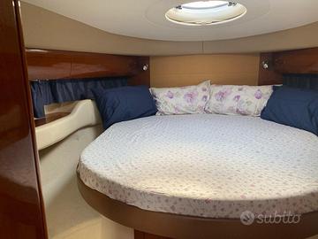 STUPENDA IMBARCAZIONE USATA POCHISSIMO ANNO 2007 MOTORI VOLVO PENTA D6 2*310hp ore moto 500 Descrizione Interni Barca completa composta da due dinette , una con letto matrimoniale E dinette di poppa con due letti singoli in piano oltre all Ingresso/salone con tavolo e zona cucina . Completano Bagno con doccia , Cucina con due fuochi , forno microonde , frigorifero , lavello , televisore e impianto stereo .. Descrizione Armamenti Presente Aria condizionata in ogni ambiente. Gruppo elettrogeno da 8 kw. Elica di prua . Passarella idraulica a scomparsa. Nel pozzetto abbiamo un tavolo apribile oltre al lavello con frigo e Teak completo per l'intero calpestio. Doccia esterna acqua calda e fredda. Esterno con due ampi e comodi prendisole sia a poppa che a prua . Presente garage per comodo tender . Barca Completa di tendalini invernali ed estivi Descrizione Strumentazione Completa di strumentazione raymarine , autopilota e chartplotter. Note Aggiuntive Eseguiti svariati lavori meccanici presso officina volvo penta dimostrabili con fattura come : - Trasmissioni nuove - Turbine nuove - Raiser nuovi - Tagliandone completo . mediazione di agenzia esclusa