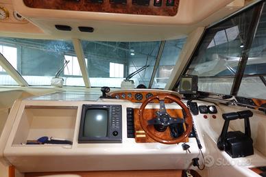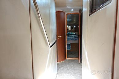 tutte le barche visibili su nostro sito. www.bluestarcorporation.it Anno Costruzione: 1995 MOTORI anno 2002. Potenza: 2 x 660 Hp Modello: Caterpillar CT 660 Tipologia: Entro Bordo Diesel Ore moto: 600 Numero cabine: 3 Posti letto cabina: 6 Posti letto totali: 6 Posti letto marinai: 1 Generatori: 1 x 12 Kw - per ulteriori dati e foto www.bluestarcorporation.it STRUMENTAZIONE ELETTRONICA DI NAVIGAZIONE Angolo barra, Bussola, Ecoscandaglio (Autohelm), GPS, Log, Pilota automatico, Plotter, Plotter con antenna GPS (Geonav), Radar (Furuno), Radio VHF (Shipmate RS 8110). ALLESTIMENTO TECNICO E DI COPERTA Allarme motore, Autoclave, 6 Batterie, Caricabatterie, Doccia esterna, Elica di prua, Faro orientabile, Flap elettrici, Impianto antincendio, Indicatori Flaps, Passerella, Piattaforma (con fondo in teack), Pompa di sentina automatica, Pompa di sentina elettrica, Pompa di sentina manuale, Pozzetto Teak, Presa 220V banchina, Salpa Ancore Elettrico, Tender, Winch tonneggio di prua. DOTAZIONI DOMESTICHE DI BORDO Aria condizionata, Boiler (220 e scambiatore), Clima reversibile, Prese interne 12v, Prese interne 220v, Telefono Interno, 2 WC marino elettrico. INTRATTENIMENTO 4 Altoparlanti, Antenna Satellitare TV, DVD, Impianto TV, Radio AM/FM, Stereo, TV.