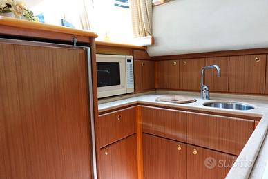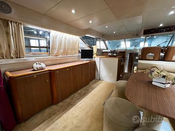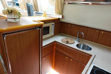 tutte le barche visibili su nostro sito. www.bluestarcorporation.it Anno Costruzione: 1995 MOTORI anno 2002. Potenza: 2 x 660 Hp Modello: Caterpillar CT 660 Tipologia: Entro Bordo Diesel Ore moto: 600 Numero cabine: 3 Posti letto cabina: 6 Posti letto totali: 6 Posti letto marinai: 1 Generatori: 1 x 12 Kw – per ulteriori dati e foto www.bluestarcorporation.it STRUMENTAZIONE ELETTRONICA DI NAVIGAZIONE Angolo barra, Bussola, Ecoscandaglio (Autohelm), GPS, Log, Pilota automatico, Plotter, Plotter con antenna GPS (Geonav), Radar (Furuno), Radio VHF (Shipmate RS 8110). ALLESTIMENTO TECNICO E DI COPERTA Allarme motore, Autoclave, 6 Batterie, Caricabatterie, Doccia esterna, Elica di prua, Faro orientabile, Flap elettrici, Impianto antincendio, Indicatori Flaps, Passerella, Piattaforma (con fondo in teack), Pompa di sentina automatica, Pompa di sentina elettrica, Pompa di sentina manuale, Pozzetto Teak, Presa 220V banchina, Salpa Ancore Elettrico, Tender, Winch tonneggio di prua. DOTAZIONI DOMESTICHE DI BORDO Aria condizionata, Boiler (220 e scambiatore), Clima reversibile, Prese interne 12v, Prese interne 220v, Telefono Interno, 2 WC marino elettrico. INTRATTENIMENTO 4 Altoparlanti, Antenna Satellitare TV, DVD, Impianto TV, Radio AM/FM, Stereo, TV.