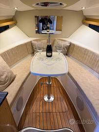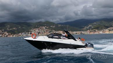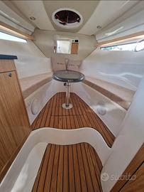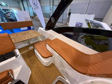 MANARA 29 Cabin dispone di una SUPERBA QUALITÀ COSTRUTTIVA di un design d'avanguardia e una linea elegante, SPAZI BEN DISTRIBUITI E SFRUTTATI NEL MINIMO DETTAGLIO , BAGNO CON ALTEZZA DI 1.75M , GRANDE LETTO DI PRUA E DI POPPA ,CON LE SUE GRANDE FINESTRATURE VI SEMBRERÀ DI VIVERE LA BARCA IN CABINA COME SE FOSSI ALL 'ESTERNO , IL TUTTO NON RINUNCIANDO AD UN POZZETTO MOLTO PIÙ GRANDE RISPETTO ALLE BARCHE DELLA SUA STESSA CATEGORIA !!! Grazie alla sapiente disposizione degli spazi, possiamo paragonare MANARA 29 ad un'imbarcazione di categoria superiore. Possiede finiture di legno pregiate, design d'avanguardia. Robustezza, solidità, ottima navigazione, contraddistinguono l'imbarcazione Manara 29! L'interno è straordinariamente accogliente, costruito con materiali di primissima qualità, con una cabina di poppa di ampie dimensioni, dotata di porta per una maggior privacy, cucina allestita con fornelli, lavabo e frigorifero e infine un bagno altezza 1.80m con wc elettrico e doccia . Esternamente troviamo un pozzetto di grandi dimensioni, dotato di mobiletto con lavello e fornello, divanettto chaise lounge, panca doppia pilota e passeggero un divanetto a poppa.