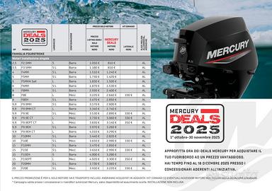 APPROFITTA ORA DEI DEALS MERCURY PER ACQUISTARE IL TUO FUORIBORDO DA 2.5 HP A 300HP AD UN PREZZO VANTAGGIOSO.