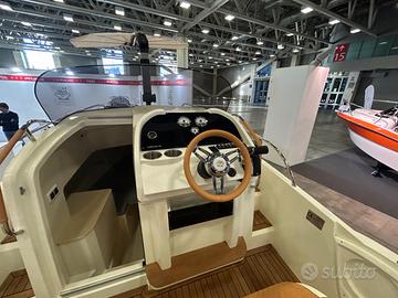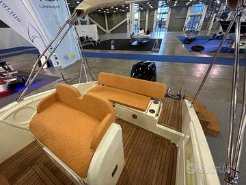 7.0 Wa con Suzuki Df 200 A, verricello ancora e catena, tappezzeria Luxury, impianto acqua dolce, vano bagno separato, tendalino inox, 2 batterie e stacca batterie. Listino 69.900 prezzo offerta 52.900.