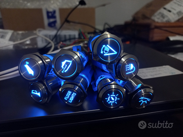 Realizzazione di pulsantiere personalizzate per barca e gommone ad uso nautico e custom. Tasti in acciaio con logo personalizzato illuminato.