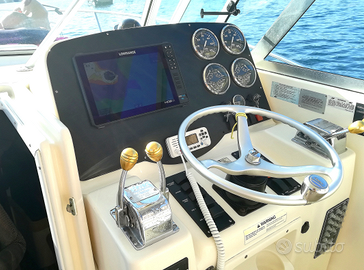 Pursuit 3000 express, anno 1999, categoria B, omologata come natante (non targata) con 2 entrobordo (linea d'asse) MerCruiser MIE 350 MAG MPI 5733 cm3 benzina con circa 1600 ore installati nel 2011, Hard-top in alluminio e VTR, GPS /ecoscandaglio Lowrance HDS 12 live con trasduttore Simrad 1kw, VHF ICOM + antenna, stereo Kenwood, tappezzeria esterna tutto 2019.