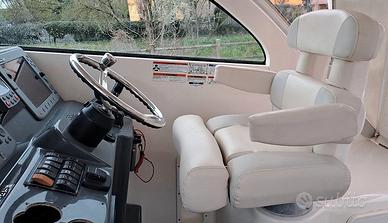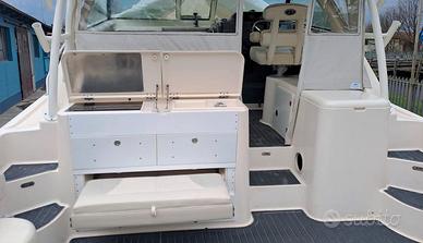 Questo magnifico PURSUIT 345 OS ( anno 2011 ) unico esemplare disponibile in Italia , si propone con un layout inconfondibile e con una qualità costruttiva e di navigazione ai massimi livelli della categoria; un modello che unisce alle peculiari caratteristiche legate alla pesca, anche una buona abitabilità interna con giusto comfort per un utilizzo sia crocieristico che per veloci spostamenti in mare Questa unità è riccamente allestita con: Generatore, Aria Condizionata, Radar, Elica di Prua, Flaps, Doppio Plotter GPS Raymarine, Eco, Vhf, Vasche varie per vivo e pescato, innumerevoli portacanne oltre a Frigorifero interno ( Nuovo ) , Piastra elettrica, Microonde, WC elettrico con serbatoio acque nere, Verricello elettrico, Carica batterie e presa banchina 220 V, Luci Sub,. Flexi Teak in pozzetto e Teak naturale in interno, Teli chiusura Hard Top . Quest'anno è stata riverniciata completamente l'opera morta e sostituite tutte le tappezzerie interne comprese le cuscinerie. La propulsione è garantita da una coppia di Yamaha 350 hp ( come da progetto costruttivo originale Pursuit ) con solo 380 h/m. Condizioni generali ECCELLENTI