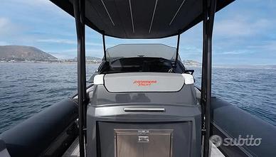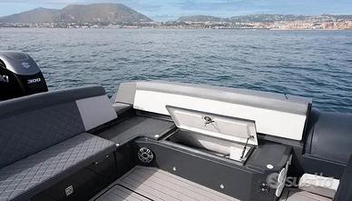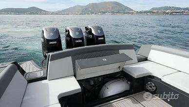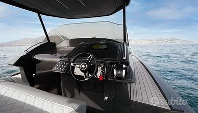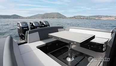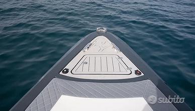 Ancora con catena zincata, Autoclave completa, Bitte a scomparsa n.2, Bitte normali n.4, Bussola alta velocità, Carena e coperta personalizzabile, Coppia fanali led - inox 12V, Conta catena ad incasso, Cuscineria personalizzabile, Doccia esterna a poppa, Frigorifero a cassetto da 70 l, Impianto stereo con 4 casse, Indicatore livello acqua, Indicatore livello carburante, Lavandino con rubinetto, Luci di fonda a 360° acciaio inox, Luci di navigazione, Oblò laterali n.4, Pannello interruttori, Passauomo basso profilo, Parabrezza in plexiglass, Piano cottura a gas, Pistoni a gas alza tutti i portelli, Pompa di sentina a immersione, Pompa di sentina a paratia, Prese USB esterne, Quadro impianto elettrico, Scaletta di risalita a scomparsa, Staccabatteria n.4, Tavolo di poppa elettrico, Tavolo interno, Tendalino posteriore, Timoneria idraulica, Tromba a incasso, Tubolari e bottazzo personalizzabili, Verricello smart plus 1000W, Volante. Cabina Cuscineria completa interna cabina, Posti letto 4+1, Luci led cabina, Toilette interna con wc elettrico, lavello e doccia.
