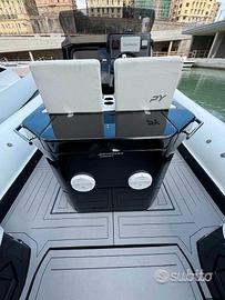 PassionMarine propone la bellissima versione del Py 10.0 OPEN ,stessa ed identica carena del Panamera Yacht Py 10.0 Cabin , ma con una coperta totalmente Open .Questo modello e' stato presentato nel 2025 al Salone Internazionale di Genova il , PY10.0 OPEN garantisce una navigazione ottimale grazie alla sua carena a V molto slanciata e alta di prua , vantando di ampi spazi e tanti comfort a bordo . Questo battello Natante di 9.99 metri in dichiarazione di conformita', misura fuoritutto 10.80 metri , si distingue per la sua linea sportiva ed elegante e offre due ampie aree prendisole, a prua vanta di un ampio prendisole comodo e largo e di un bellissimo Divano SCESLONG comodo anche per chi vuole stare comodo durante la navigazione. La poppa vanta di un divano a forma di 'C' si trasforma facilmente in un unico prendisole grazie al pagliolato di terra centrale che si solleva elettricamente. Alzando il tavolo di poppa per meta' fino all'altezza cuscini si ottiene un intero prendisole di poppa, mentre alzandolo alla sua massima estensione si ottiene un comodo e spazioso tavolo per poter pranzare comodomante . La Cabina con entrata accanto alla consolle di guida , vanta di uno spazio versatile che può fungere da spogliatoio per le proprie esigenze , Inoltre, è dotato di un pratico WC a vista ricoperto da un paiolato in legno ,vanta sotto cabina di un comodo letto matrimoniale per garantire il massimo relax durante le vostre giormate in mare. MOTORIZZAZIONE consigliata 2x 250 cv fino ad un max di 2x300 o massimo 2x350 cv CARATTERISTICHE TECNICHE : Lungh. F.T.: 10,80m Lungh. omolog. : 9,95 m Largh. F.T.: 3,50m Pescaggio: 0,70m Serb. Carburante: 475lt Serb. Acqua: 130lt Peso battello: 3.200kg Potenza Max.: HP 700/KW 514 Portata persone: 14 Cat. omologazione: Cat. B PASSION MARINE vi accompagna a 360° nel mondo della nautica da diporto ,vi seguiamo passo passo per garantirvi il meglio per la scelta del vostro gommone o barca che sia Nuovo o Usato.