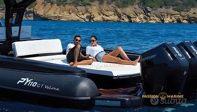 PASSION MARINE vi propone uno DEI MODELLI DI CASA PANAMERA YACHT PIU' VENDUTI ,ad oggi ha avuto un enorme successo,ad oggi il piu' richiesto e piu' venduto della gamma PYACHT. Il PY 110GT Veloce , Sportivo, Seducente e Imponente con il suo bellissimo HARD TOP IN CARBONIO ,è il gommone perfetto per chi desidera vivere il mare in modo versatile , grazie all'enorme area living a poppa e al prendisole di prua molto ampio. Rappresenta l'apice dell'eleganza e delle prestazioni tra i maxi RIB della gamma PanameraYacht , unendo in modo impeccabile innovazione tecnologica e design.Natante con i suoi 12,50 metri di lunghezza e 3,90 metri di larghezza, questo gioiello nautico domina il mare con una presenza imponente, offrendo un'esperienza di navigazione senza compromessi. Motorizzabile con Doppia o Tripla motorizzazione, questo gommone totalmente Open vanta di una bellissima area di Prua con un ampio prendisole ed un bellissimo divano SCESLONG comodo per i passeggeri anche durante la navigazione ,vanta di una Poppa comodissima, il prendisole di poppa si alza facilmente rivelando sotto l'enorme prendisole un gavone molto profondo ed estremamente ampio per lo stivaggio di oggetti o x un piccolo tender. La superficie completamente livellata crea un'area versatile e spaziosa, mentre i camminamenti laterali offrono un accesso agevole al prendisole e alla plancia di comando.