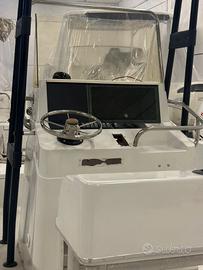 quest 207 marca four winns americana anni 90 no CE ottima carena barca completamente refittata impianto elettrico nuovo compresp luci via e pozzetto led pompa aentina pompa per vasche vivo nuove t-top nuovo idro guida sea star frigo cooleman davanti alla consolle guida nuovo lucidatura scafo la barca e' da motorizzare porya da 150 a 200 cv