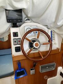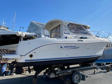 Quick Silver 700 Weekend anno 2007 con motore diesel Volkswagen 150cv Select Edition con 1400 ore !!!Motore in perfette condizioni con cinghia distribuzione già fatta e scambiatore revisionato!!!Serbatoio 135 lt,serbatoio acqua potabile e doccia esterna,elica di prua e salpa ancora elettrico!!!!Flap idraulici ,ecoscandaglio con plotter Raymarine ,VHF e stereo ,copertura vetri,carica batterie con attacco da banchina !!!Barca in perfette condizioni!!!Velocita crociera 12nodi ,Max 16 ..Consumi molto bassi