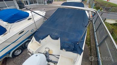 Quicksilver 635 Commander WA prodotta nel 2008 con motore Tohatsu 140Hp nuovo del 2025 con 40 ore di moto circa, colore bianco (garanzia fino al 2028), portata 6 persone, telo copertura pozzetto, lunghezza 6,35 m, larghezza 2,55 m, pescaggio 0,40 m, timoneria idraulica completamente (guarnizioni e tenute ) ad inizio 2025, doccetta di poppa, WC chimico, ecoscandaglio Garmin 140 fishfinder, doppia batteria, impianto stereo, tendalino sole acciaio inox XL, 2 poltrone girevoli, Cabina interna con 2 posti letto con cuscineria nuova 2024, salpa ancora Italwinch elettrico con ancora da 7.5kg e 30 MT di catena, 6 parabordi con copertura in tessuto nero, telo di copertura totale del pozzetto.