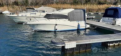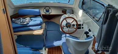 Anno 2011. mt. 6,90 x 2,50. Motore ore 600 EFB Mercruiser 3.0 135 CV. .WC elettrico in locale separato. Serbatoio carburante 140 Lt.. Serbatoio acqua 100 Lt.. Fornello+lavandino interno e doccia esterna. Ecoscandaglio e GPS Garmin. Autoradio+casse Bose. Retrocamera posteriore+visore interno. Scaletta risalita in acciaio, salpaancore elettrico ancora Bruce + 30 mt. catena. Dotazioni fino a 6 miglia per sei persone, razzi, parabordi e cime ormeggio. Luci a led interne ed esterne. Estintore interno e altro automatico nel vano motore. Tendalino di chiusura totale finestrato che permette di navigare completamente riparati. Autoclave + 2 pompe sentina. Ventilatore estrazione gas vano motore. Cassetta pronto soccorso. Doppio tergicristallo. Antivegetativa, girante e olio piede marzo 2026. Disponibile posto barca in acqua a Valli di Chioggia in Marina.