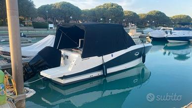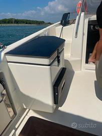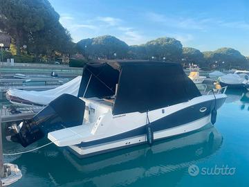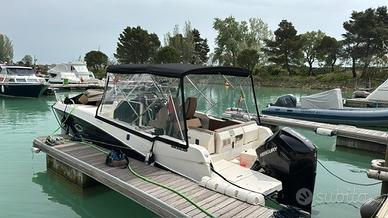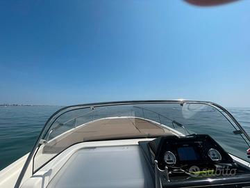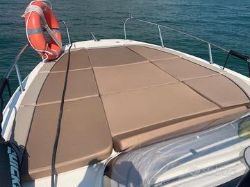 Quicksilver 755 sundeck con Mercury F225 tagliandi regolari circuito ufficiale mercury, super accessoriata con 350 ore in garanzia fino a luglio 2026, active trim, simrad nss evo3, impianto stereo fusion con casse interne e esterne, vhf, presa banchina, caricabatterie victron, pannello solare con mppt victron, 2 batterie (1x100ah motore 1x130ah servizi) cucina esterna con lavandino fornello e frigo, vc marino con serbatoio acque nere e trituratore, copertura ormeggio in sunbrella, copertura consolle e copertura sedili guida, chiusura camper in sunbrella e chiusura in crystal, cuscineria originale completa in perfetto stato, materassi letto raddoppiati in altezza per dormire comodi, 2 paia di lenzuola su misura, prolunga per letto in pozzetto, illuminazione completa in pozzetto, cabina e subacquea, serbatoio acqua dolce 80 litri, serbatoio carburante 280 litri, perfetta per vacanze lunghe in 2 o 3 persone, portata fino a 8 persone, consumi irrisori, tenuta con tanta cura.