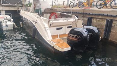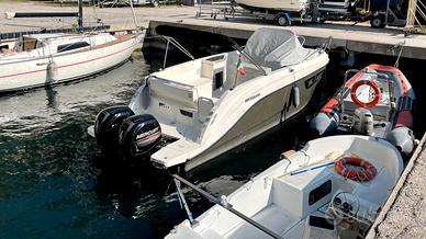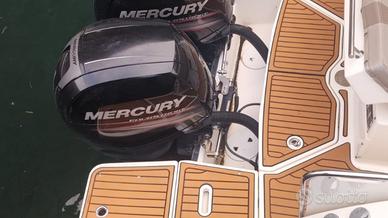 Vendo barca Quicksilver 805 Active anno 2016 doppio motore Mercury 150 Hp completa di tendalino con chiusura camper, teak sintetico appena fatto, completamente riverniciata, radio, ecoscandaglio, cucina con lavandino e altri accessori. Vendo causa inutilizzo. Sempre usata al lago 330 ore di navifazione