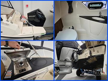 Vendesi Barca natante. immatricolazione 04/2024, motore mercury V8 300cv garanzia 5 anni con 150 ore di moto. barca come da foto praticamente nuova. 4 posti letto mai usati. cucina mai usata, bagno mai usato. Barca perfettamente in ordine. come nuova. il prezzo di listino con motore è di 108.000 euro. Le foto sono originali, la barca si presenta così come da foto. è visibile a Mestre (ve). le specifiche tecniche sono le seguenti. per altri dati nel sito ufficiale scrivendo QUICKSILVER ACTIV 805 con tutte le informazioni tecniche ulteriori che necessitate. Lunghezza fuoritutto 8,29 m Lunghezza della Carena 7,63 m Larghezza massima 2,55 m Altezza dal piano di calpestio 1,80 m Peso vuoto dell'imbarcazione escluso il motore 1813 kg Peso massimo motore 478 kg Capacità massima di carico 790 kg Serbatoio acqua 80 l Capacità massima serbatoio 280 l Modello serbatoio carburante Integrato Altezza della barca 2,26 m Portata massima persone 9 Categoria CE C Numero posti letto 4