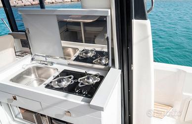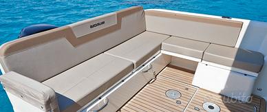 L'Activ 905 Weekend è il nostro più grande e più elegante modello ed é costruita sui cardini della sicurezza, del comfort, dello stile e della potenza. Comoda per 10 persone è adatta per esplorare il mare, per una giornata di relax o di pesca. Potendo scegliere tra l'installazione di un motore fuoribordo singolo o doppio e tra le varie potenze di entrofuoribordo, avrai la potenza che cerchi! ACTIV 905 WEEKEND: Lunghezza fuoritutto 9,09 m Lunghezza fuoritutto 2,98 m Potenza massima 450 hp Portata massima persone 10 Categoria CE B Numero posti letto 6 Possibilità di motorizzazione: Mercury 250 V8 Verado Mercury 300 V8 Verado Mercury 400 V10 Verado Twin Mercury F150 Twin Mercury 200 V6 Twin Mercury 225 V6 MD 3.0 L 270 SD DTS Bravo Mercruiser 6.2 L 300 HP DTS Bravo Catalyst Mercruiser 6.2 L 300 HP DTS Bravo Catalyst Seacore 4"RSR Mercruiser 6.2 L 350 HP DTS Bravo Catalyst 4" RSR A PARTIRE DA EURO 145.670,00 COMPRESA IVA E MOTORE MERCURY 250 V8 VERADO. I PREZZI SI INTENDONO COMPRESO IVA E MOTORE SONO ESCLUSI OPTIONAL, TRASPORTO, ALLESTIMENTO E IL NECESSARIO ALLA MESSA IN ACQUA DELL'IMBARCAZIONE. GLI IMPORTI SONO VALIDI SALVO VARIAZIONI LISTINO. DEALER UFFICIALI QUICKSILVER E MERCURY MARINE. CONTATTACI PER UN PREVENTIVO