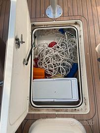 Molti accessori già installati, come la cuscineria completa di coperta e sotto coperta, salpa ancora elettrico, luci di navigazione e un fantastico tendalino con telo camping trasformabile in spray hood per le giornate più fredde.