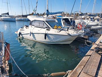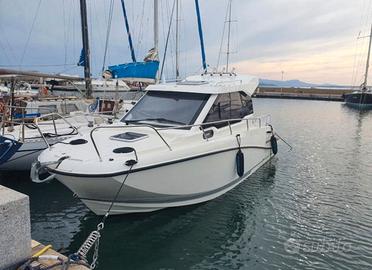 Barca Quicksilver Active 675 Dimensioni: 7.37 x 2.50, portata 8 persone, 3 posti letto. Anno 2023 Dotazioni standard: Estensione plancette di poppa, cuscineria di prua, Wc marino separato, fornello a gas, presa in banchina. SMART Pack: Salpa ancora elettrico, tettuccio apribile, cuscineria pozzetto, tavolo pozzetto in Teak, tende, frigo 51 lt., faretto diffusore in pozzetto, kit ormeggio. Dotazioni aggiuntive: elica di prua, tendalino sospeso, doppia batteria, carica batteria da banchina 220V, filtro separatore benzina Motorizzato con Mercury F225 XL V6 White, anno 2023 con 11 ore di moto. Garanzia motore 3 anni dalla casa madre Garanzia barca 1 anno. Consegnata con lavaggio, ceratura e tagliando eseguito. PREZZO RIBASSATO DA € 65.000,00 a € 59.000,00