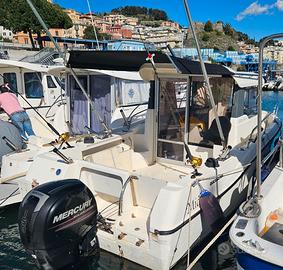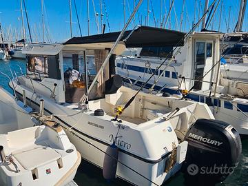 Quicksilver Pilothouse 605 con fuoribordo Mercury 150cv, anno 2015, 2000 ore effettuate prevalentemente a velocità di traina , elica acciaio nuova originale, pilota automatico garmin, doppia guida interna ed esterna, tendale originale, vasca del vivo integrata a poppa, salpa ancora elettrico, doccia acqua dolce + doccia pescaggio diretto in mare, ideale per pesca e gite in famiglia