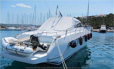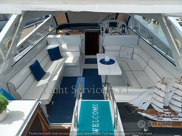 EBANISTERIA INTERNA PERFETTA, SALOTTO IN PELLE, CUSCINERIA COMPLETA, PRENDISOLE A PRUA E A POPPA, HARD TOP, PLANCETTA DI POPPA ALLUNGATA.