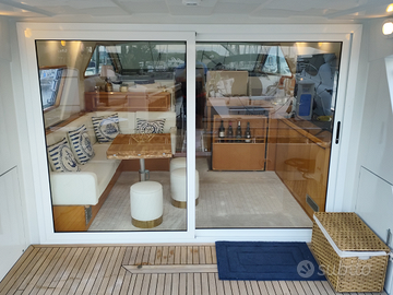 Imbarcazione bellissima, la più spaziosa e comoda della sua categoria, praticamente una casa galleggiante in soli 13m. Quattro camere di cui: una matrimoniale, due doppie ed una singola. Tre bagni di cui due spaziosissimi con doccia separata e uno all'interno della cabina singola.