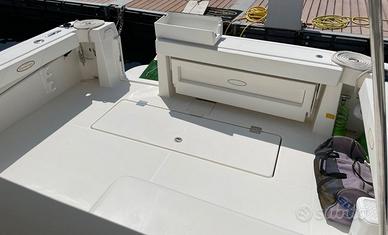 Il cantiere Rampage Yachts, con sede negli Stati Uniti, è noto per la produzione di sportfisher robusti e marini, ideali per la navigazione in ogni condizione. La 34 Express è uno dei modelli più iconici, con carena a V profonda e ampi spazi in coperta per la pesca o la crociera. Pensata per chi cerca affidabilità, comfort e grandi doti da pesca , la 35 Express unisce linee robuste a finiture di alto livello, tipiche della tradizione nautica USA. Disposizione interni: cabina accogliente con zona giorno trasformabile, cucina attrezzata e bagno con doccia separata Anno: 2005 lunghezza fuori tutto : 11,73 m , lunghezza scafo: 10,67 m, baglio massimo: 4,17 m, Immersione: 0,91 m, dislocamento a pieno carico: circa 10.800 kg. Capacità carburante: 1.514 litri, capacità acqua: 265 litri. Descrizione Motore Marca motori: Caterpillar, potenza: 2x 500 HP, ore: 30. Motori nuovi installati nel 2024. Accessori Generatore Mase , aria condizionata, manette elettroniche, tenute americane PSS - performance e sicurezza a secco elettronica Furuno: GPS + ecoscandaglio integrato, pilota automatico. OTTIME CONDIZINONI Tutti i contenuti (caratteristiche, metrature, accessori, ecc. ) degli annunci sono puramente indicativi, potrebbero contenere imprecisioni o errori, pertanto non comportano nessun vincolo contrattuale. Per garantire la privacy, l'indirizzo può non rispecchiare esattamente l'ubicazione del natante ed è utile al solo fine di fornire un riferimento generico per la sua localizzazione ed un ausilio alla consultazione. Il prezzo è soggetto a mediazione agenzia. Gli acquirenti hanno diritto di ispezionare personalmente l'oggetto e/o di sottoporre il natante a perizie a loro spese, il mediatore non può essere considerato responsabile delle probabili inesattezze qui riferite. Consigliamo di visionare sempre l'oggetto prima dell'acquisto.