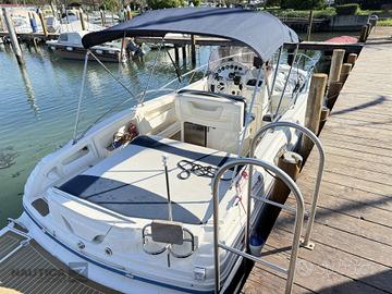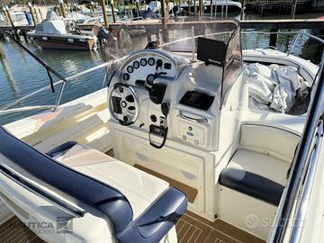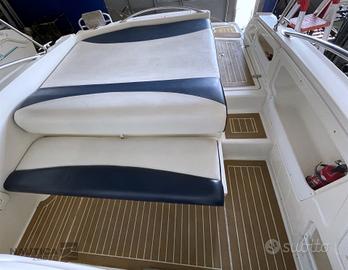 NOTE SUL PREZZO IVA Pagata DATI PRINCIPALI Cantiere: Rancraft Modello: Vittoria 23.60 Anno Costruzione: 2006 Lunghezza: 6,87 m Condizione: usato Tipologia: Open Codice: 634745 La Rancraft Vittoria 23.60 è un'imbarcazione open prodotta dal cantiere italiano Rancraft Engineering. Questo modello, lungo circa 7,65 metri e largo 2,50 metri, è progettato per offrire un'esperienza di navigazione confortevole e performante. Tra le caratteristiche principali, la Vittoria 23.60 può ospitare fino a 10 persone, rendendola ideale per uscite in compagnia. È equipaggiata con un motore entrofuoribordo; ad esempio, alcune unità montano un Mercruiser 5.0 MPI da 260 CV, che garantisce buone prestazioni in mare. MOTORI Potenza: 1 x 260 Hp Modello: Volvo Penta 5.0 GXI Tipologia: Entro Fuori Bordo Benzina Trasmissione: Duo Prop Anno: 2006 Ore moto: 100 ABITABILITÀ Numero bagni: 1 DATI TECNICI Larghezza: 2,46 m Persone trasportabili: 10 Serbatoio carburante: 140 l Serbatoio acqua: 45 l Impianto elettrico: 12V STRUMENTAZIONE ELETTRONICA DI NAVIGAZIONE Contamiglia, Ecoscandaglio, GPS (Raymarine), Plotter con antenna GPS. ALLESTIMENTO TECNICO E DI COPERTA Allarme fumo/gas, Ancora, 2 Batterie, Doccia esterna, Pompa di sentina automatica, Salpa Ancore Elettrico, Scaletta da bagno, Tromba. DOTAZIONI DOMESTICHE DI BORDO Prese interne 12v, WC marino elettrico. INTRATTENIMENTO Radio AM/FM, Stereo. CUCINA ED ELETTRODOMESTICI Frigorifero esterno. TAPPEZZERIE Bimini (Acciaio Inox), Copripozzetto, Cuscineria completa, Cuscineria di poppa, Cuscineria di prua.