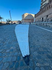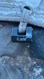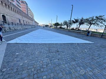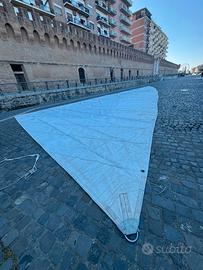 Randa DOYLE full batten in ottimo stato, per imbarcazione da 60 piedi. Era montata su una barca da 20 metri chiamata Durlindana. Vela sostituita per vele più performanti per le regate. La randa ha 2 mani di terzaroli, ma è predisposta per la 3a mano se vengono effettuati i fori per i matafioni . Carrelli Antal con inferitura in materiale materiale realizzato con resine a basso coefficiente d’attrito rinforzate. Mancano le stecche. Vela molto pesante, non è prevista spedizione ma ritiro di persona. Misure: Balumina 24 mt; Inferitura 21,7 mt; Base 8,6 mt.