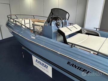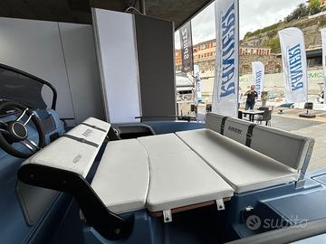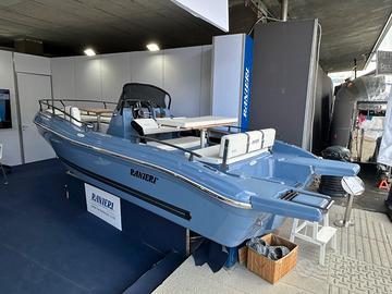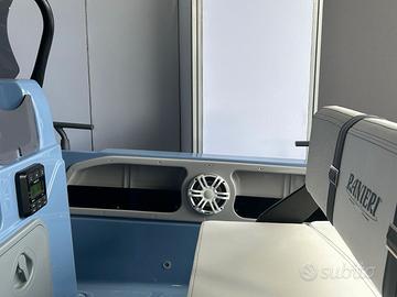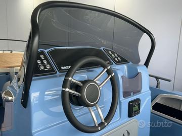 Centro Nautico S.Anna, concessionario del prestigioso Cantiere Ranieri, ha il piacere di proporvi in ANTEPRIMA la nuova AZZURRA, open di 6.50 mt in allestimento speciale 40th Anniversary !!! Azzurra 40th Anniversary, grazie alle sue linee eleganti e alla ineguagliabile qualità costruttiva celebra perfettamente l’identità Ranieri fatta di storia e passione, tradizione e innovazione, un legame tenace e autentico con la Nautica che non conosce tempo né confini, audace e fiera come il suo fondatore Antonio. L’allestimento speciale 40th comprende in particolare: Colore Blue Azur, White Ice o London Grey Tappezzeria Luxury 40th Anniversary Plancette di poppa Prendisole di prua e di poppa Kit Stereo Bluetooth Hertz Impianto doccia Tasche laterali Tavolo pic-nic di prua e di poppa Tendalino Inox La barca si può ulteriormente personalizzare con le Chaise Longeur di prua, il frigorifero, il verricello elettrico con ancora e catena, il rollbar con tendalino integrato, le luci di cortesia, l’ecoscandaglio della linea Garmin. Possibilità di motorizzarla con motori senza patente da 40 cavalli fino a 150 cavalli. Prezzo PROMO con Mercury 40/60 PRO a 28.900 Euro Iva Inclusa Prezzo PROMO solo scafo Euro 21.900 Iva Inclusa Dati della barca Lunghezza: 6.50 mt Larghezza: 2.30 mt Portata: 10 persone Peso: 600 Kg Veniteci a trovare Sul Lago Maggiore nella nostra marina a Sesto Calende, siamo aperti anche il sabato e domenica, oppure contattateci per un preventivo personalizzato con le motorizzazioni e gli accessori che preferite. Siamo concessionari Ranieri, Scar, Seawind, Barqa, Ayros, dealer Mercury Marine, carrelli stradali Satellite, disponiamo inoltre di una selezione di usati garantiti con e senza patente.
