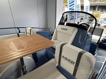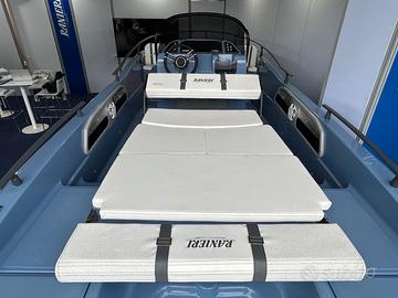 Centro Nautico S.Anna, concessionario del prestigioso Cantiere Ranieri, ha il piacere di proporvi in ANTEPRIMA la nuova AZZURRA, open di 6.50 mt in allestimento speciale 40th Anniversary!!! Azzurra 40th Anniversary, grazie alle sue linee eleganti e alla ineguagliabile qualità costruttiva celebra perfettamente l’identità Ranieri fatta di storia e passione, tradizione e innovazione, un legame tenace e autentico con la Nautica che non conosce tempo né confini, audace e fiera come il suo fondatore Antonio. L’allestimento speciale 40th comprende in particolare: Colore Blue Azur, White Ice o London Grey Tappezzeria Luxury 40th Anniversary Plancette di poppa Prendisole di prua e di poppa Kit Stereo Bluetooth Hertz Impianto doccia Tasche laterali Tavolo pic-nic di prua e di poppa Tendalino Inox La barca si può ulteriormente personalizzare con le Chaise Longeur di prua, il frigorifero, il verricello elettrico con ancora e catena, il rollbar con tendalino integrato, le luci di cortesia, l’ecoscandaglio della linea Garmin. Possibilità di motorizzarla con motori senza patente da 40 cavalli e fino a 150 cavalli. Prezzo PROMO con Mercury 40/60 PRO a 28.900 Euro Iva Inclusa Prezzo PROMO solo scafo Euro 21.900 Iva Inclusa Dati della barca Lunghezza: 6.50 mt Larghezza: 2.30 mt Portata: 10 persone Peso: 600 Kg Veniteci a trovare Sul Lago Maggiore nella nostra marina a Sesto Calende, siamo aperti anche il sabato e domenica, oppure contattateci per un preventivo personalizzato con le motorizzazioni e gli accessori che preferite. Siamo concessionari Ranieri, Scar, Seawind, Barqa, Ayros, dealer Mercury Marine, carrelli stradali Satellite, disponiamo inoltre di una selezione di usati garantiti con e senza patente.