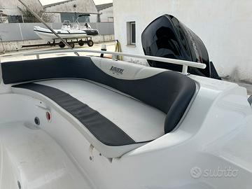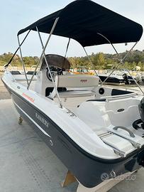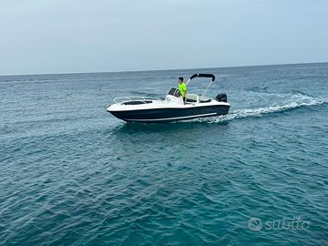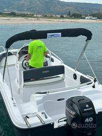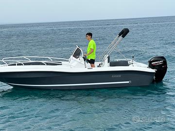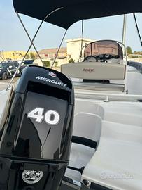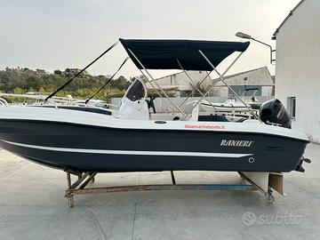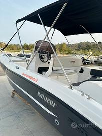Imbarcazione Ranieri modello Azzurra 6 mt completa di Mercuri 40 pro. Anno di costruzione Giugno 2023 con 263 ore di moto. Tendalino inox con tessuto sumbrella nero, serbatoio carburante, impianto stereo Hertz marine, tappezzeria luxury, colore carena antracite, musone di prua , ecc Imbarcazione visibile a Soverato.