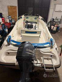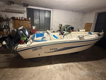Ranieri azzurra 5 m. X 2 m barca in buone condizioni mai fatta anti vegetativa mai rettificata. Uscite domenicale rimessaggio al coperto e lavaggio ogni uscita a casa Monta motore Yamaha 40/70 16 V getel Con 190 ore fatto tagliando olio piede girante appena sostituito completa eco garmin autoradio boss stacca batteria faro anteriore non vendo solo motore barca anno 2007 motore anno 2011
