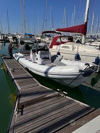 dotazioni : Cuscineria elegance completa, Salpa ancora elettrico, Pompa di sentina, Prendisole a poppa con prolunga, kit gamba tavolo poppa, Telo copri consolle e sedata, Serbatoio benzina 260 lt, Serbatoio acqua 60 lt con impianto doccia e autoclave, Luci di navigazione, Plancette extralunghe con scaletta di risalita ,Verricello elettrico con ancora e catena.