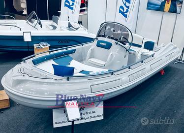 Dotazioni di serie: Pompa sentina; Luci di navigazione; Timoneria meccanica; Serie corrimano; 4 bitte ormeggio a scomparsa; Scaletta di risalita; Prendisole di prua; Scafo bianco; Tappezzeria esterna; Porta oggetti.
