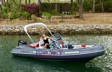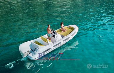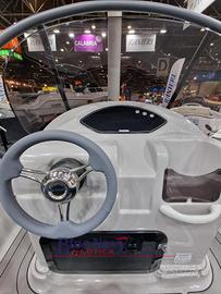 Dotazioni di serie: Pompa sentina; Luci di navigazione; Timoneria meccanica; Serie corrimano; 4 bitte ormeggio a scomparsa; Scaletta di risalita; Prendisole di prua; Scafo bianco; Tappezzeria esterna; Porta oggetti.